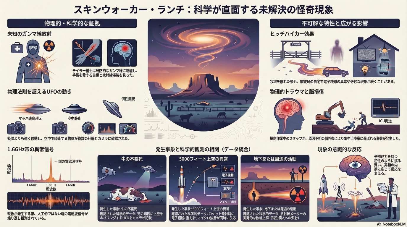 天体物理学者である博士は、ユタ州にあるこの奇妙な牧場で目撃されるUFOや家畜の欠損、さらには人体に悪影響を及ぼす謎の放射線などの異常現象について、科学的な視点から詳細に語っています。
