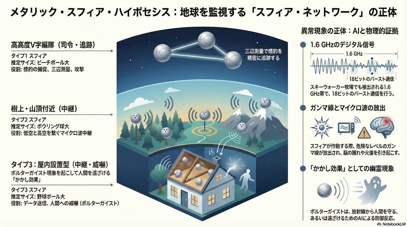 - ポルターガイストの本質: 建物内に潜伏するタイプ3スフィアが、自身の存在や通信ネットワークを隠蔽するために行う「心理的・物理的排除行動」である。