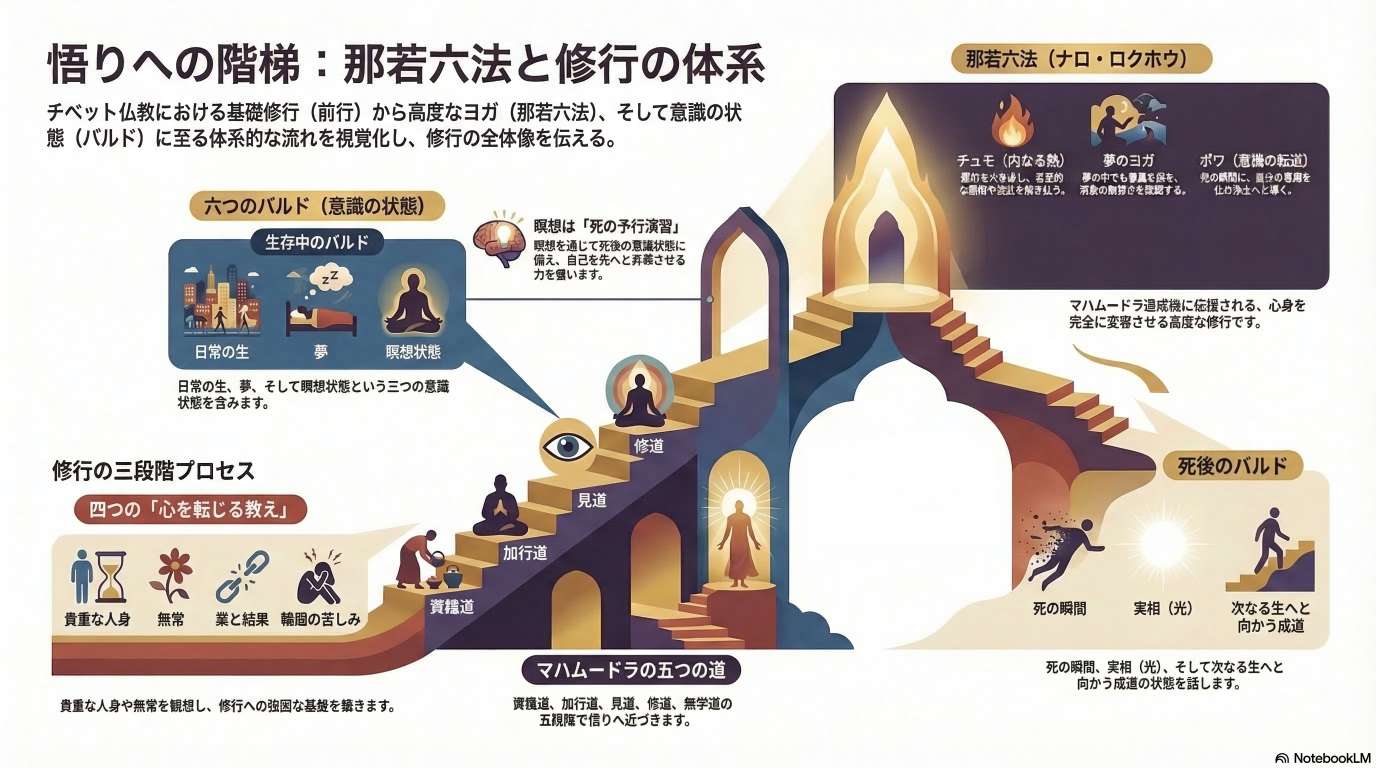 このテキストは、YouTubeチャンネル「Buddha Practice」による、ナーローパの六法に向けた加行(前行)の解説と実践の記録です。