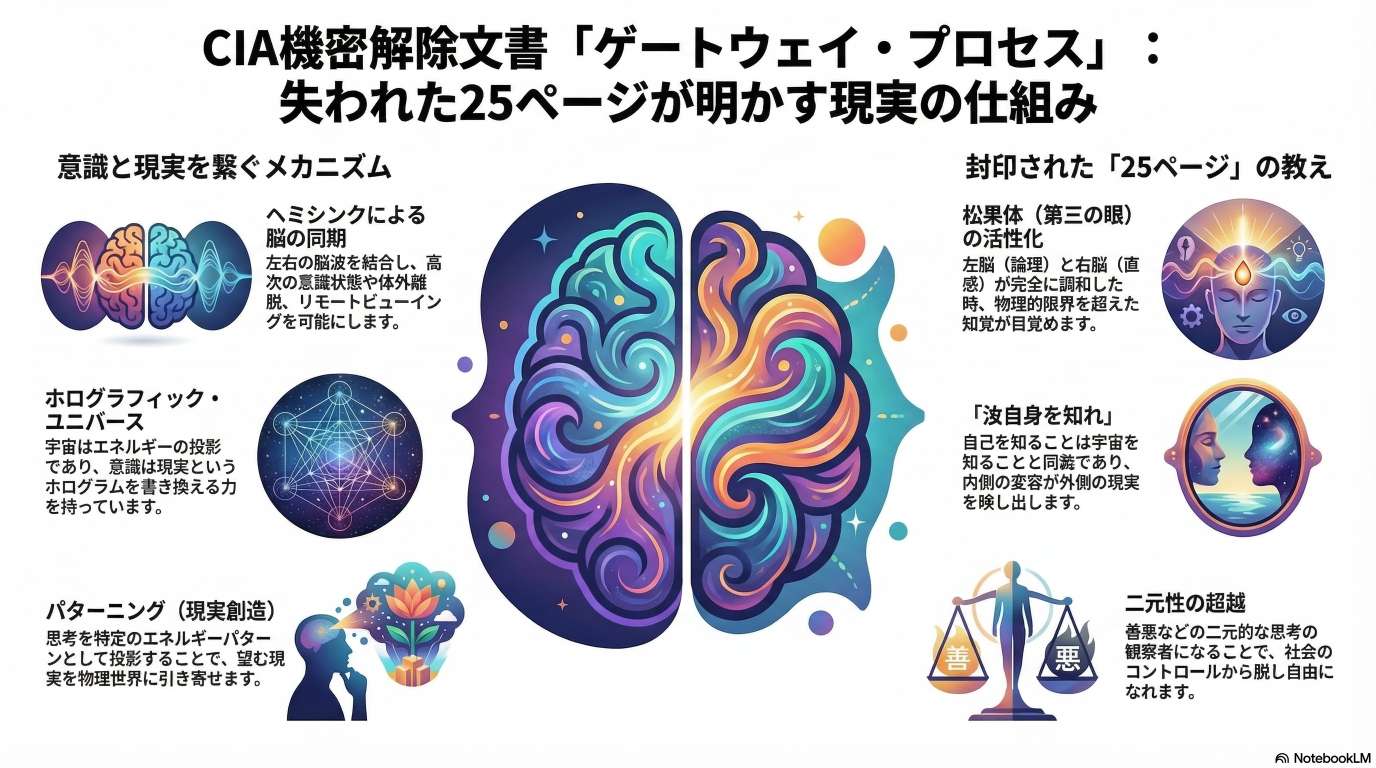 このテキストは、かつて機密扱いだったCIAの文書「ゲートウェイ・プロセス」と、長年欠落していた第25ページの内容について解説しています。